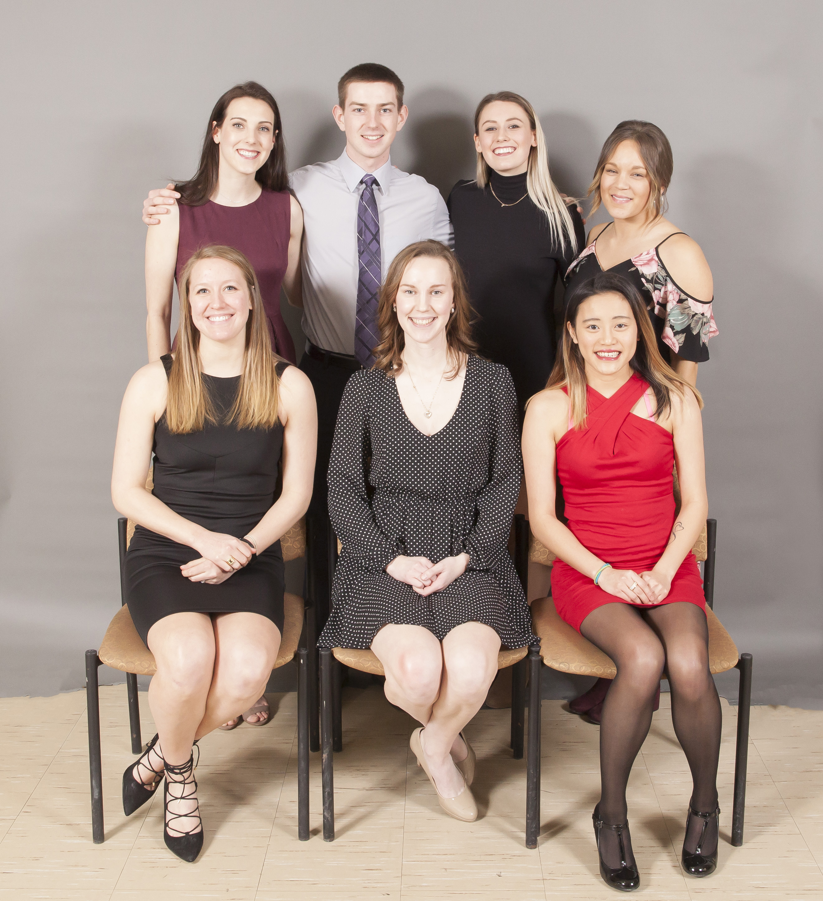 front l-r: James Colpitts (woodsmen), Katie Walsh (soccer), Sarah Pepperdine (badminton), Eve Godin (equestrian)